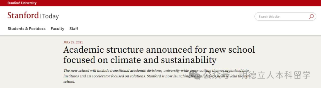 2021年7月底,斯坦福大学就宣布开设一个专注于气候和可持续发展的新学院。