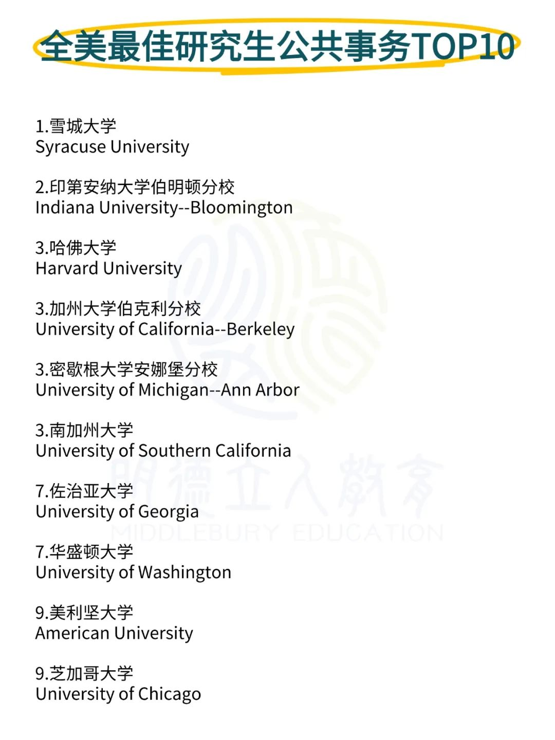 公共事务专业领域的课程排名完全基于同类院校教育工作者的评分。