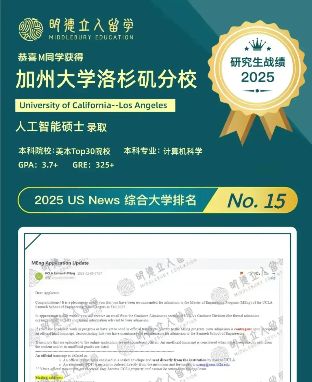 下面还有明德25Fall年成功申请美国CS研究生的部分成功案例,大家可以匹配自己的情况作为参考: