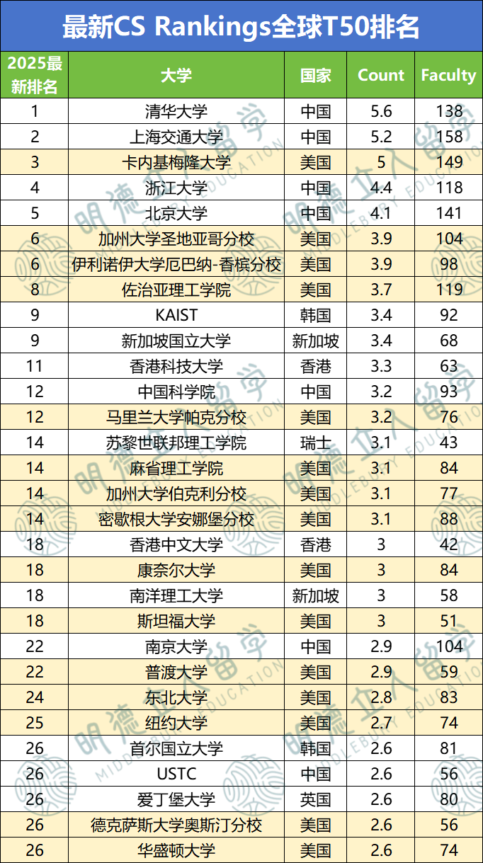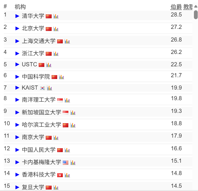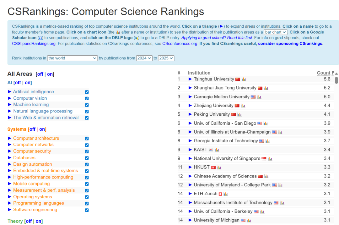 还有浙江大学、北京大学,共同进入了全球前5,中国共计10所大学上榜,可以看出中国在CS领域的快速崛起!