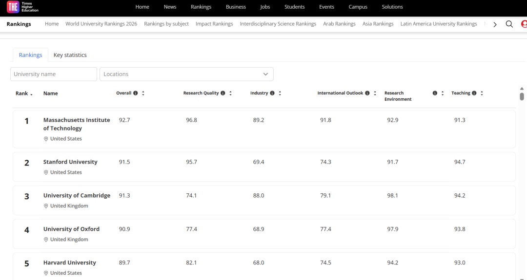 THE官网上也有排名分数细则,想了解某所院校具体排名情况,也可以去观察查看。