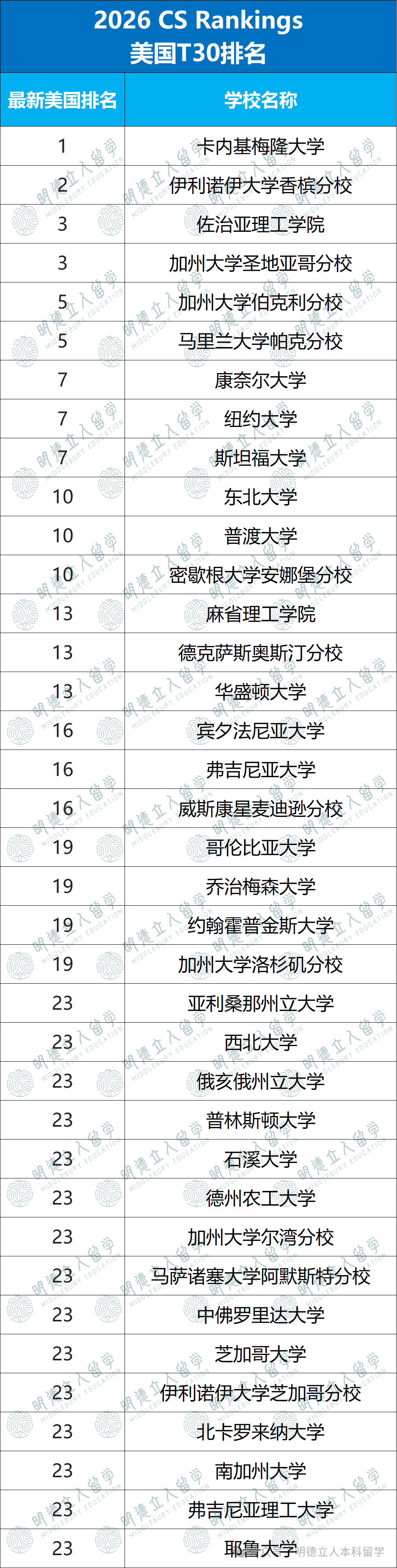 💡核心亮点:在美国计算机(系统)排名前10的榜单中,共有11所大学入围。