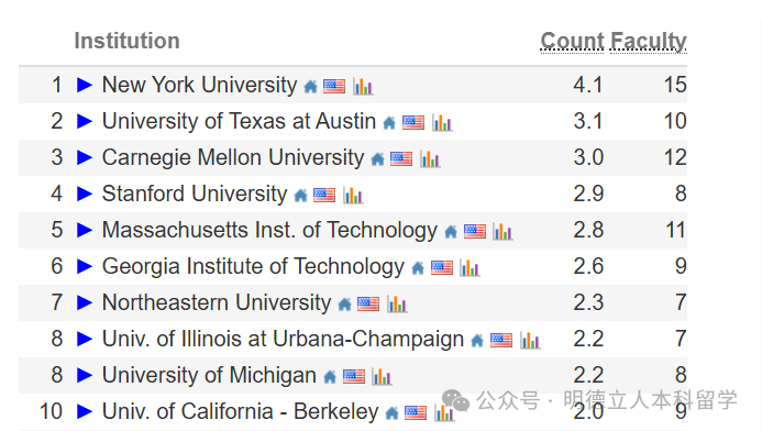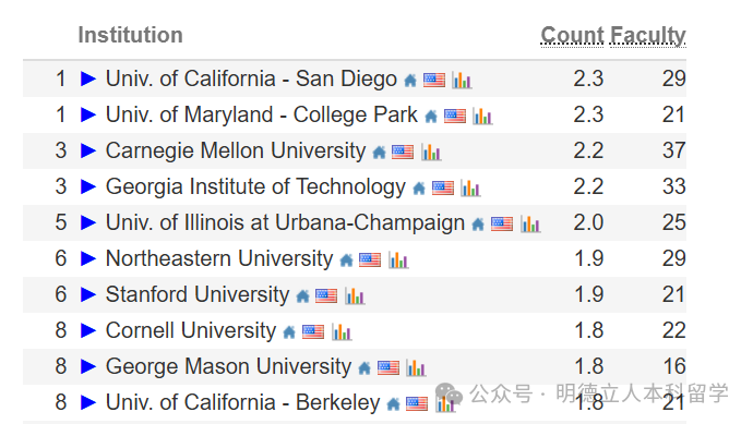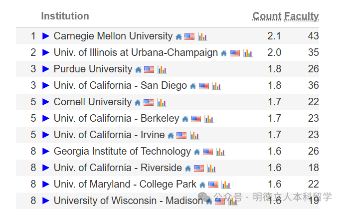 💡核心亮点:在美国计算机科学(AI)排名前10的榜单中,共有11所大学入围。