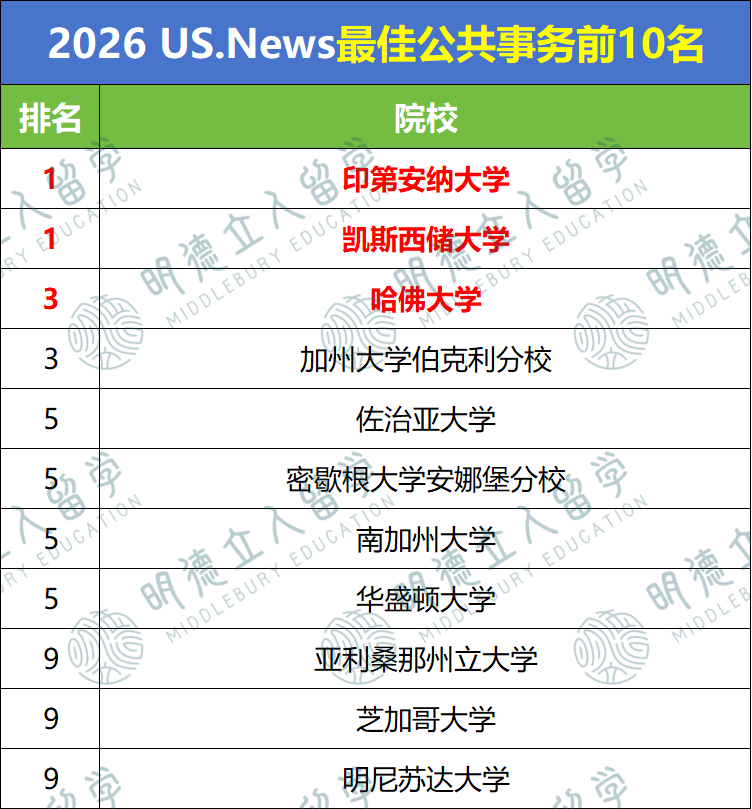 - 佐治亚大学、密歇根、南加大、华盛顿大学并列第五,相比去年竞争更为密集;