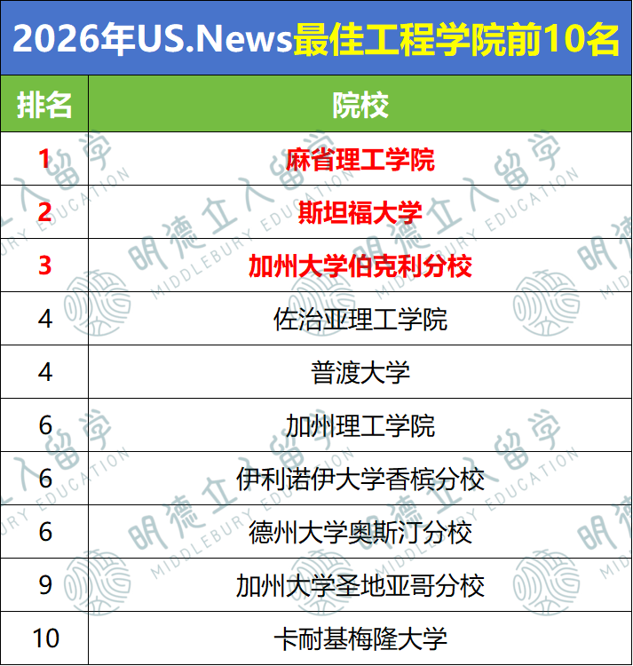 - MIT、斯坦福、UCB这三所“理工神校”,稳居 “工程三巨头”;