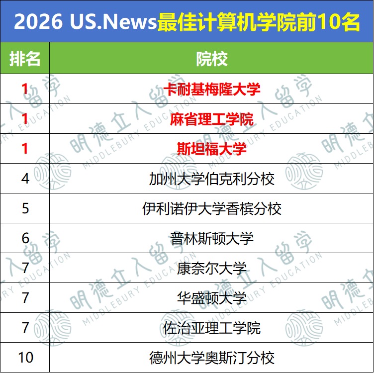 - CMU和斯坦福上升1名,与MIT并列榜首;
